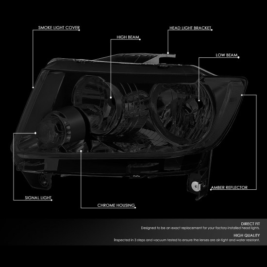11-13 Jeep Grand Cherokee Headlights – Smoked Housing Clear Corner