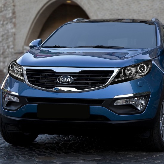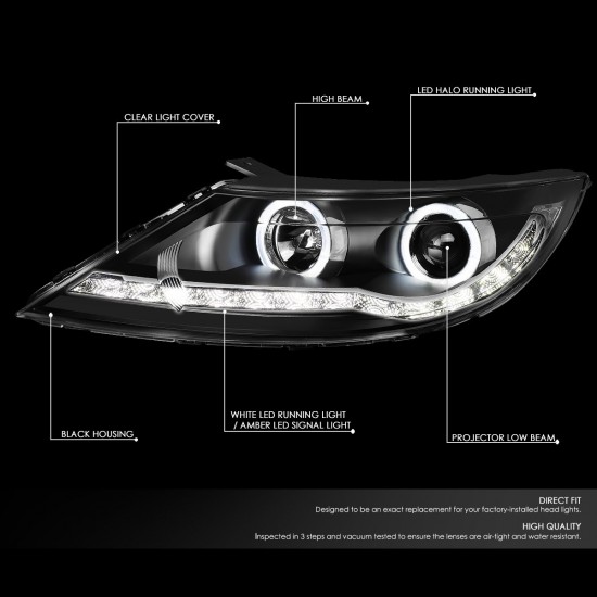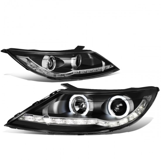 11-16 Kia Sportage LED DRL+Turn Signal Projector Headlights – Black Housing
