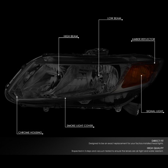 12-15 Honda Civic Headlights – Smoked Housing Amber Corner