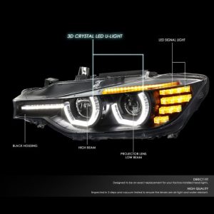 12-16 BMW F30 320i 325i 328d 328i 330e 335i 340i LED U-Halo Projector Headlight – Black