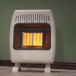 12,000 BTU Propane / Natural Gas Wall Heater for Indoor Use – Dual Fuel, Vent-, with Standing Base Legs, white