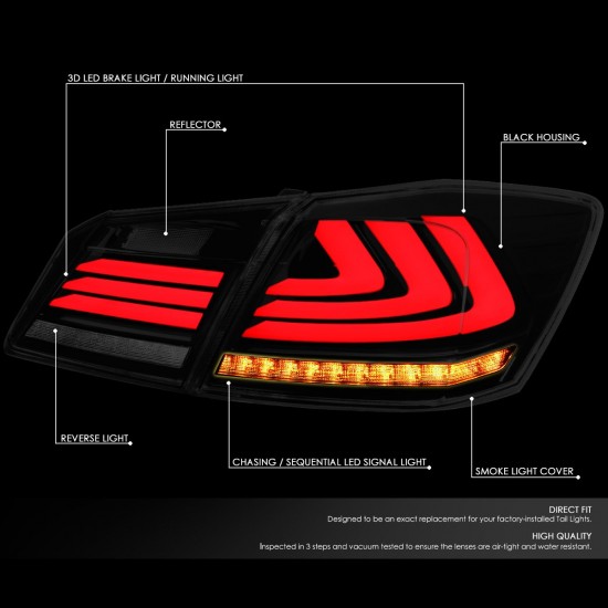 13-15 Honda Accord Sedan LED Bar+Sequential Turn Signal Tail Lights – Smoked Lens