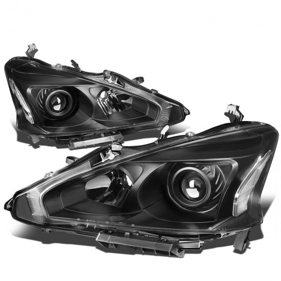 13-15 Nissan Altima Sedan Projector Headlights – Black Housing Clear Corner
