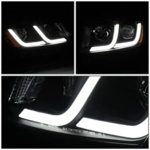 14-16 Jeep Grand Cherokee LED DRL Projector Headlights – Black Housing Amber Corner