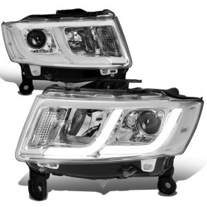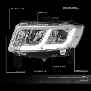 14-16 Jeep Grand Cherokee LED DRL Projector Headlights – Chrome Housing Clear Corner