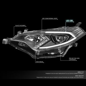 14-16 Toyota Corolla LED DRL Projector Headlights – Black Housing Clear Corner