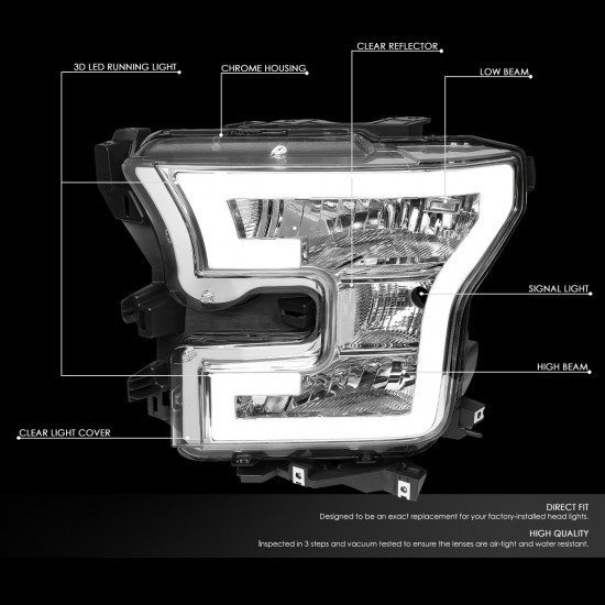 15-17 Ford F150 LED DRL Headlights – Chrome Housing