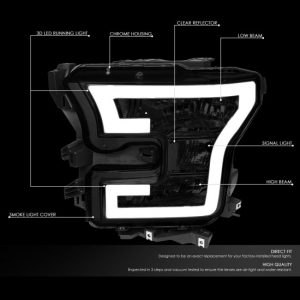 15-17 Ford F150 LED DRL Headlights – Smoked Housing