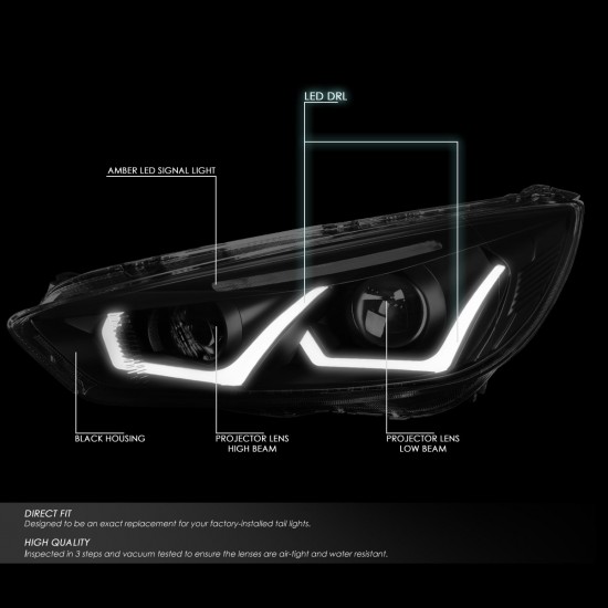 15-18 Ford Focus LED DRL+Turn Signal Projector Headlights – Tinted Housing