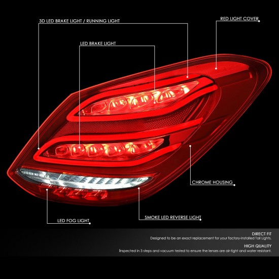 15-18 Mercedes-Benz W205 C200 C250 C300 C63 AMG Sedan LED Rear Brake Tail Lights – Red/Smoked