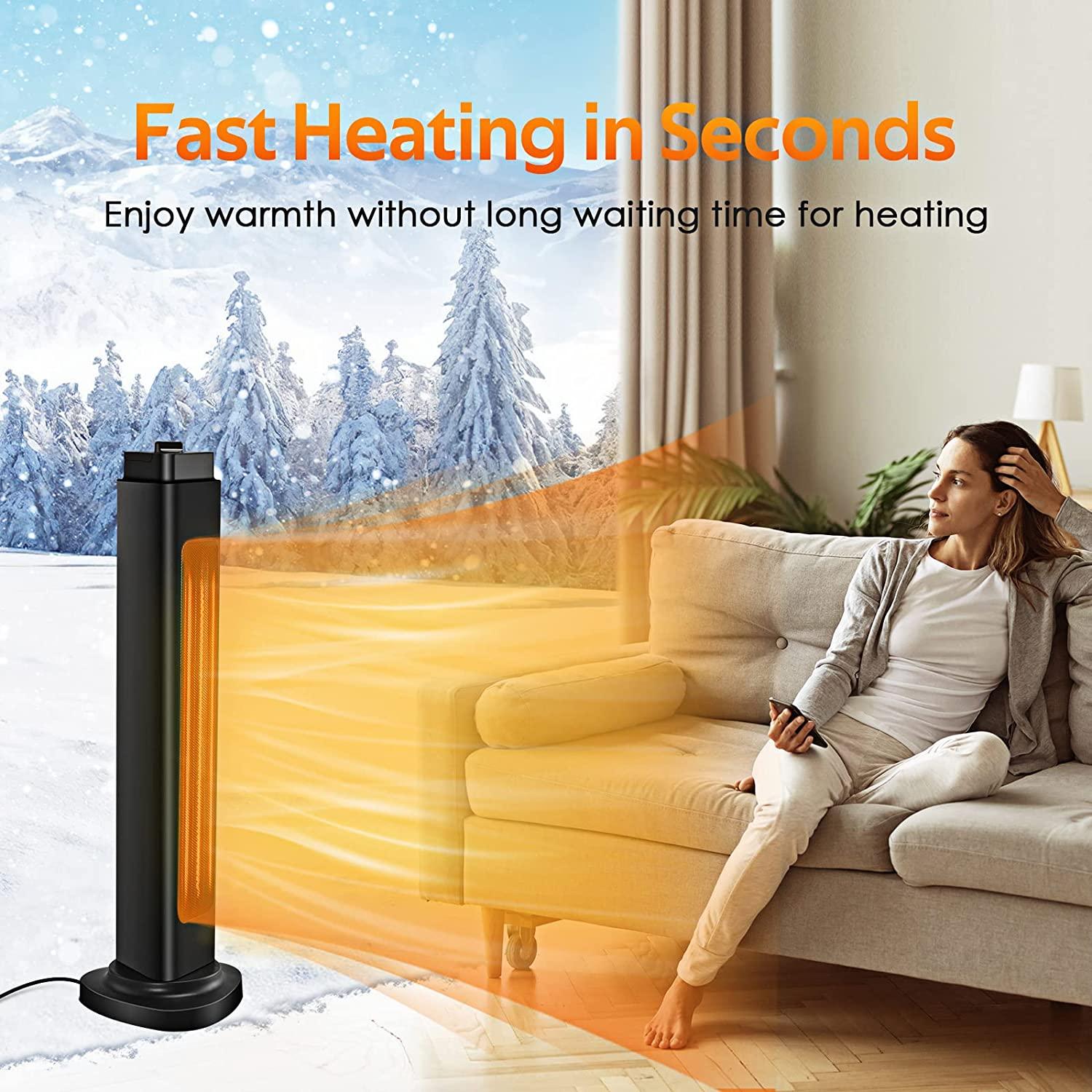 - Widespread Oscillation Function & Quiet Operation: This space heater for a large room can oscillate from left to right within 90 degrees, so it can fast and evenly distribute warm air throughout the room while maintaining a consistent temperature; Designed for medium to large rooms, the portable space heater can bring you the maximized and constant warmth without annoying sounds that disturb you from sleeping, working, conversation or meditation