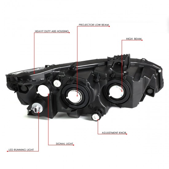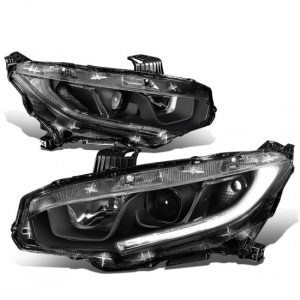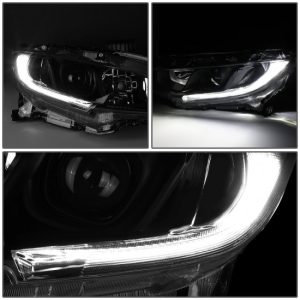 16-18 Honda Civic LED DRL Projector Headlights – Black Housing Clear Corner