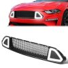 18-20 Ford Mustang Front Upper Bumper Grille w/Antenna LED DRL – Badgeless Honeycomb Mesh