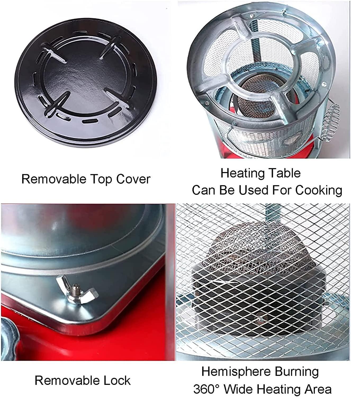 2 in 1 Portable Kerosene Heater Stove Stainless Steel Oil Heater Glass Burner for Ice Fishing Hiking Hunting Survival Emergency Patio 22.9.23 (Size : Red)