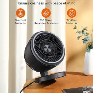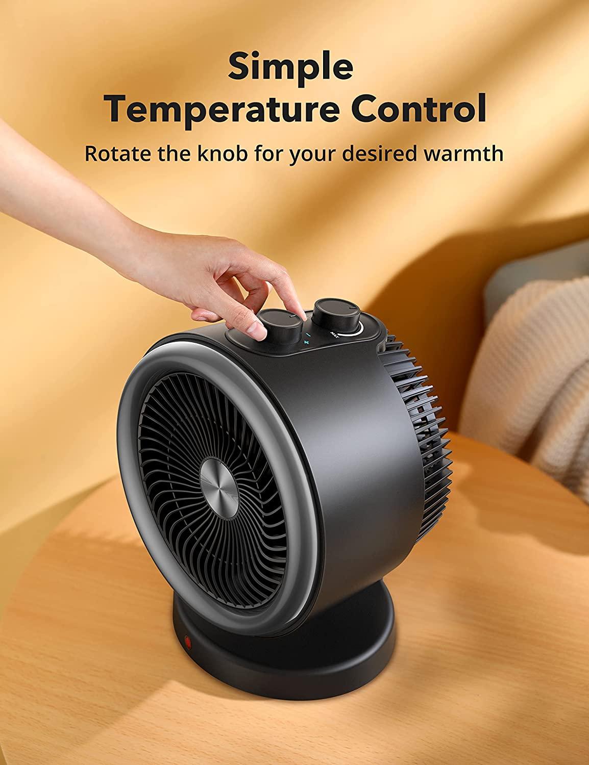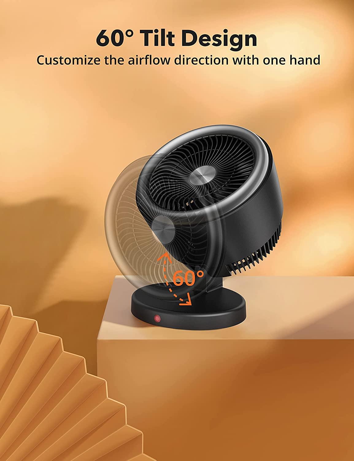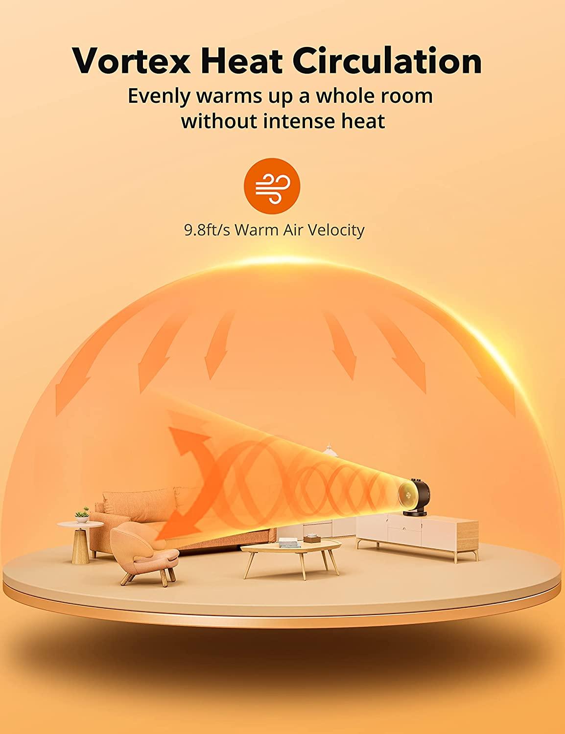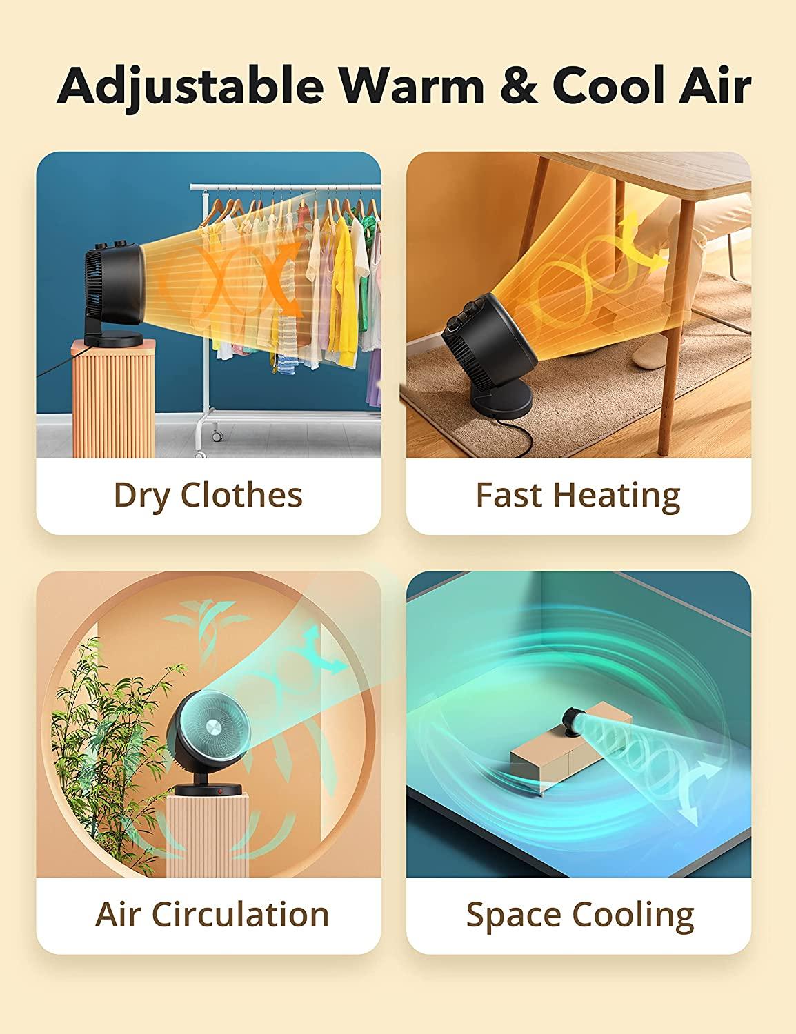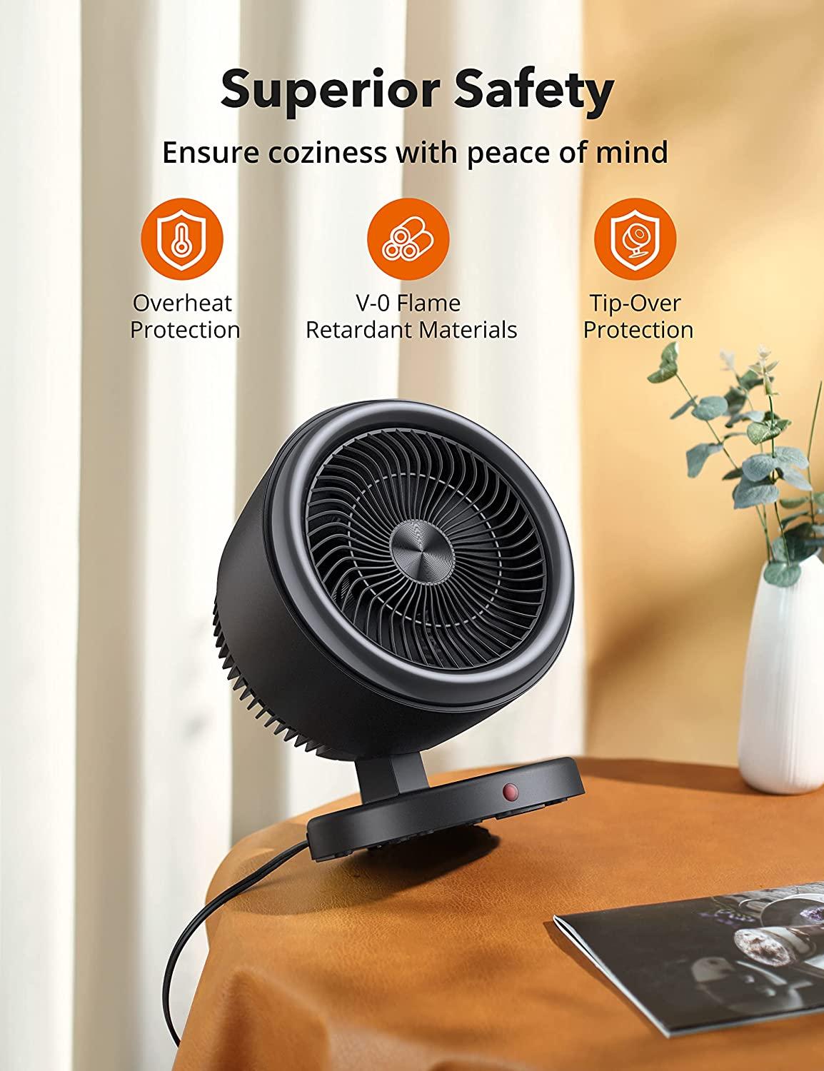 2-in-1 Vortex Portable Circulation Fan, 2 Heat and Fan Modes, 60°Wide Tilting Angle, Tip-over and Overheat Protections