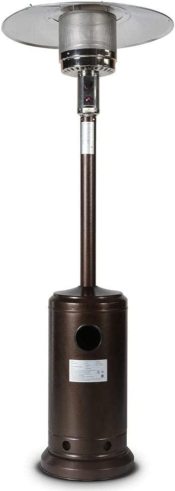 - 1.【Less Fuel, More Heat】This New spring styles patio heater outputs a 46,000 BTUs of heat, providing heat up to a 9-foot radius and Heat range up to 25 feet in diameter. The max flux of this heater measures at 11-13.5 kW (450-870g/h). A patio heater will allow you to keep holding backyard gatherings well into the spring, as they give off the perfect amount of heat to keep your patio toasty warm.