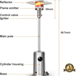 48000 BTU Outdoor Propane Patio Heater, Tainless Steel Outside Space Gas Heater with Wheels, Standing Patio Floor Air Heater, for Commercial, Residential, Garden, Porch, Party, Deck