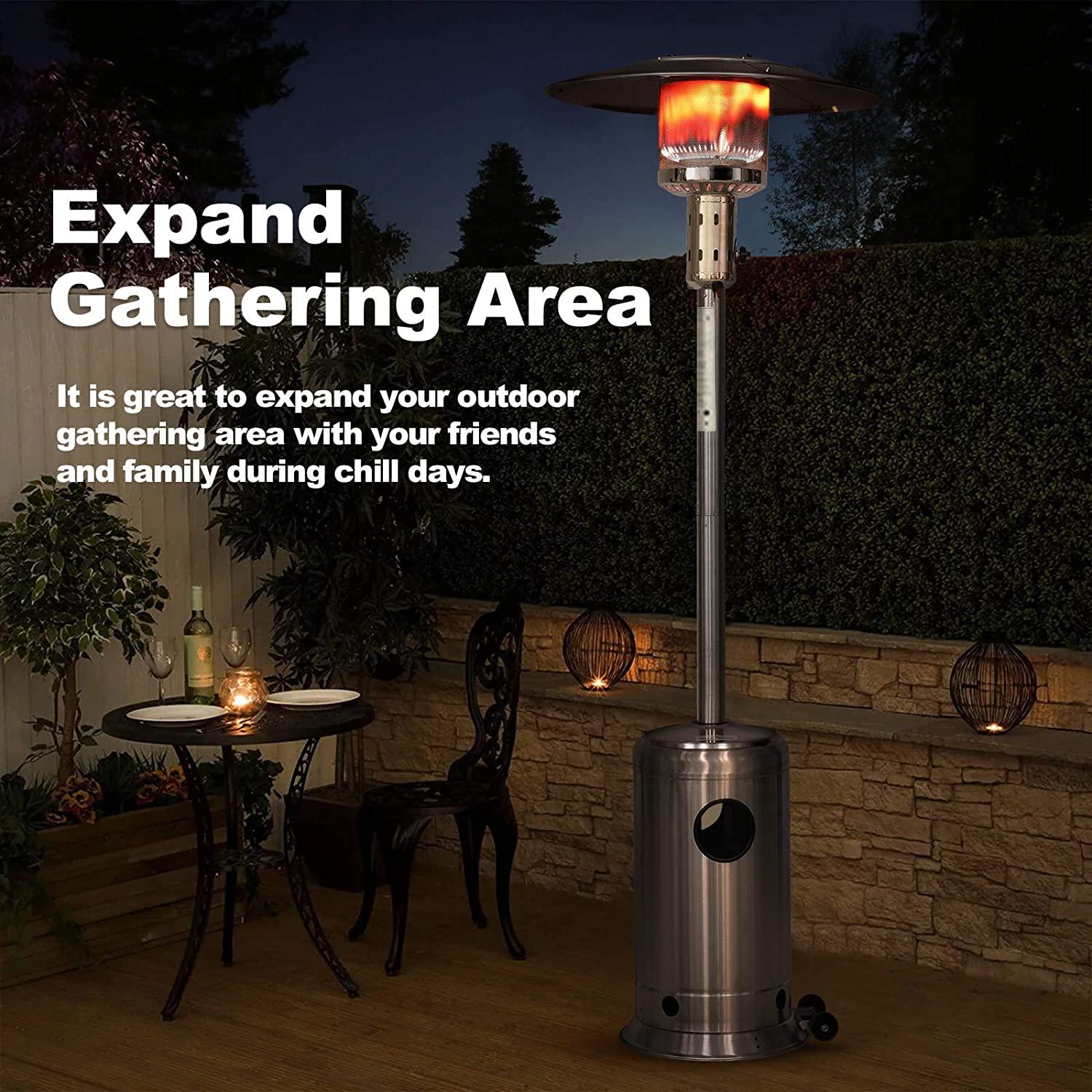 During these chill days, with this 48,000 btu Propane Patio Heater which make you feel warm in under 5 minutes. Thanks to the unique flame emitter design, the patio heater heating faster and burning more efficiently than most heaters out there, warm up your deck or porch immediately.