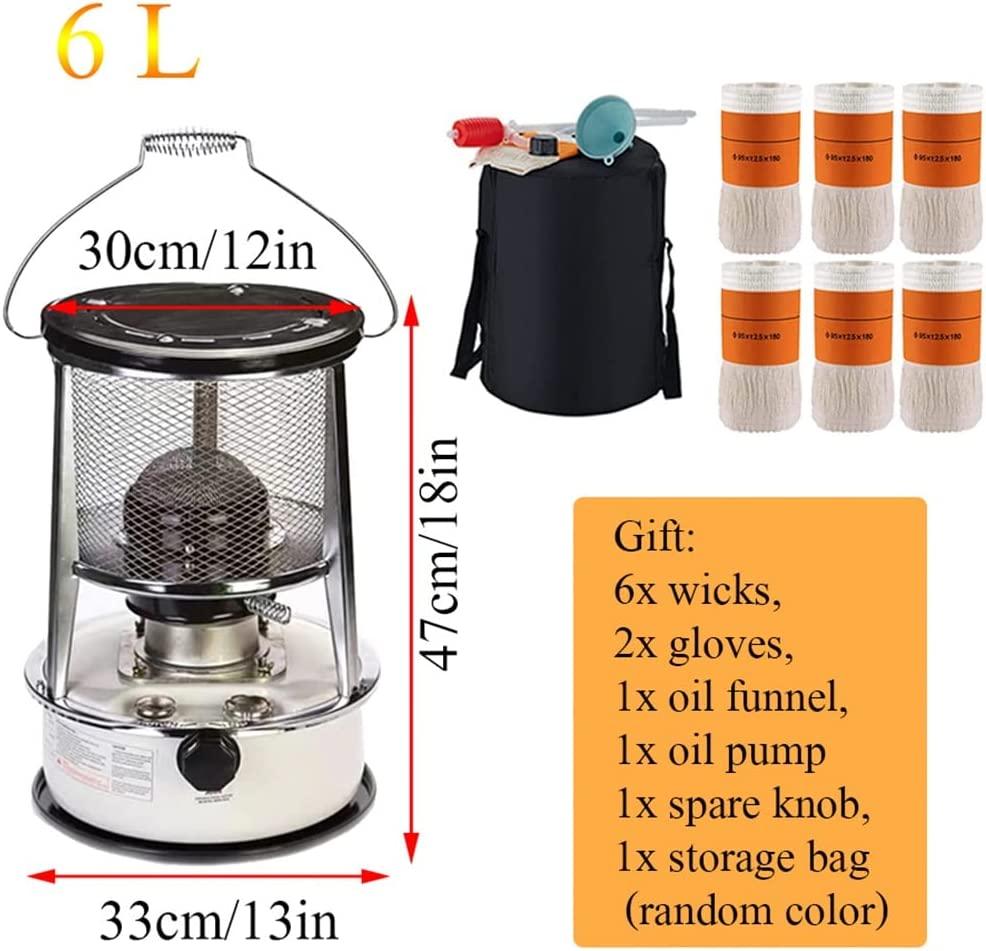 6L Durable Kerosene Stove for Outdoor Camping with 6 Wicks Lightweight Kerosene Heater Stove Burner with Fall Protection Adjustable Firepower White (Color : 6L+White, Size : 18x13x13in)