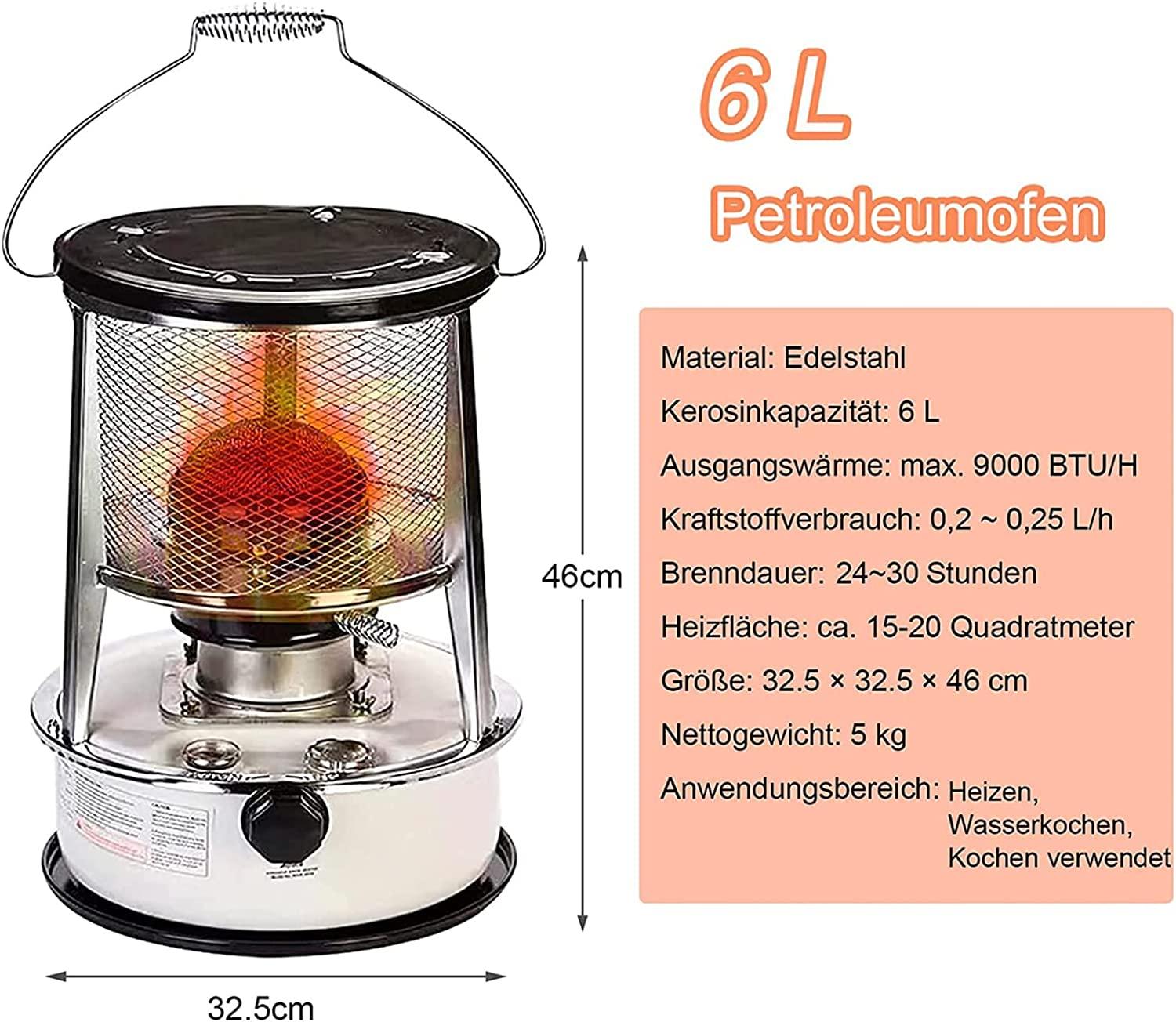 - ✿ Versatile uses: The petroleum heater can be used for heating, boiling water, cooking and grilling. The high-quality petroleum oven extends outdoor stays and can be used indoors, camping heater, garden, restaurant, beer garden, tent heater, greenhouse, emergency heater, balcony or on a covered terrace.