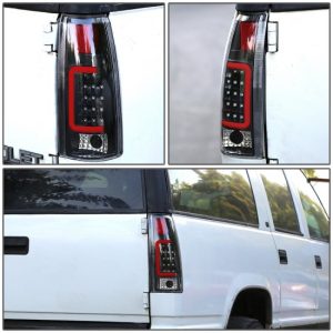 88-00 Chevy Silverado C10 C/K 1500 2500 3500 Suburban Red C-Bar LED Tail Lights – Black