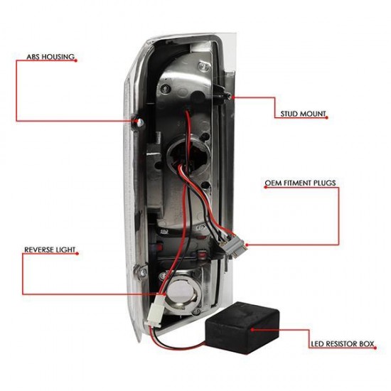 90-97 Ford F150 F250 F350 Bronco LED Bar Rear Brake Tail Lights – Chrome Housing