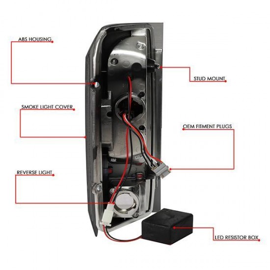 90-97 Ford F150 F250 F350 Bronco LED Rear Brake Tail Lights – Smoked Housing