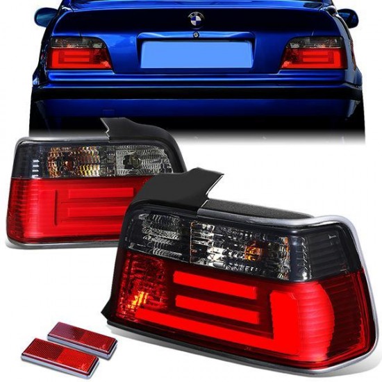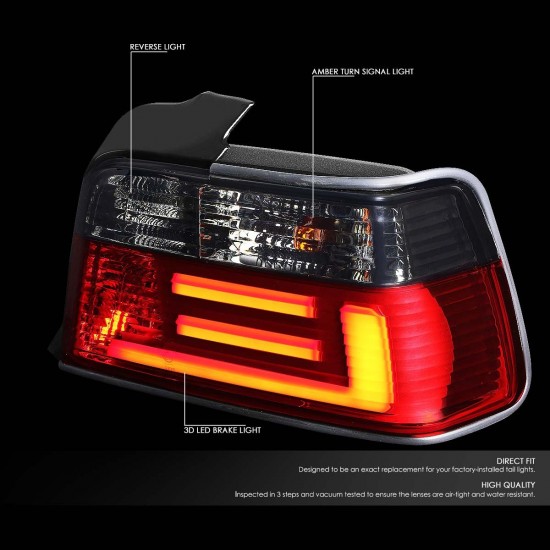 92-98 BMW E36 318i 320i 323i 325i 328i M3 Sedan LED Bar Rear Brake Tail Lights – Red/Smoked