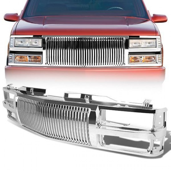 94-00 Chevy C/K 1500 2500 3500 Front Grille – Badgeless Vertical Fence Style – Chrome