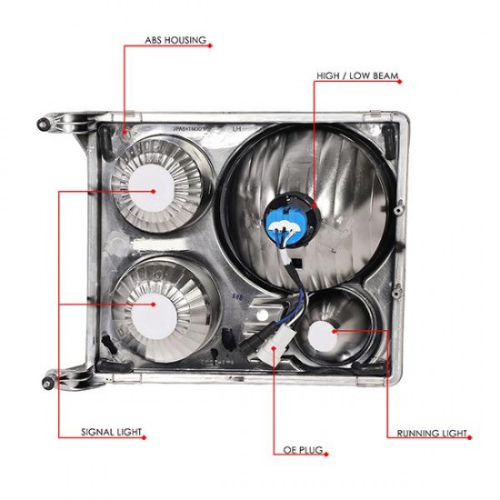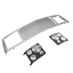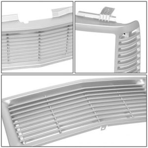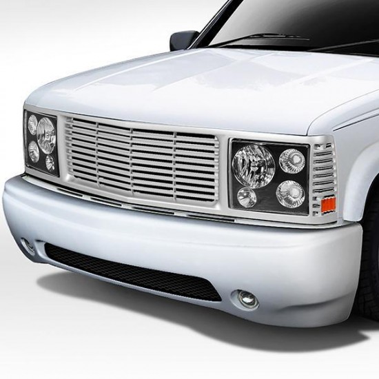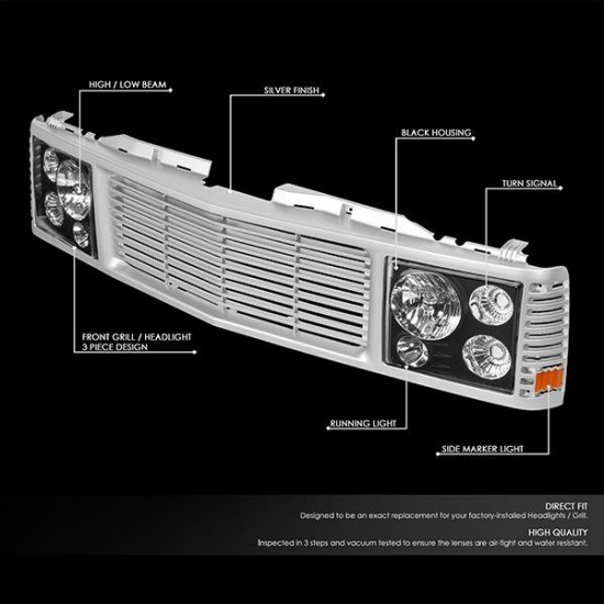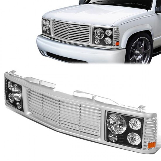 94-00 Chevy GMC C/K 1500 2500 3500 Black Housing Headlights+Silver Front Grille