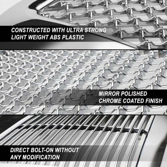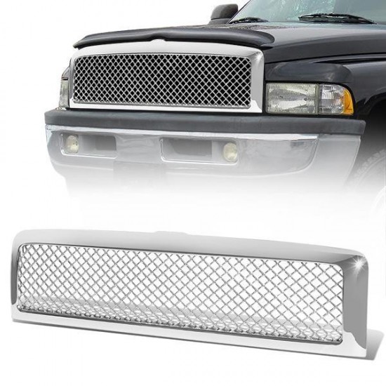 94-02 Dodge Ram 1500 2500 3500 Front Grille – Badgeless Diamond Mesh – Chrome