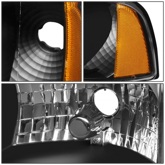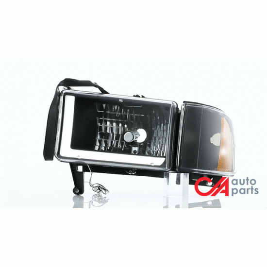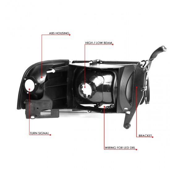 94-02 Dodge Ram 1500 2500 3500 LED DRL Headlights – Black Housing Amber Corner
