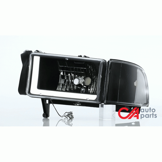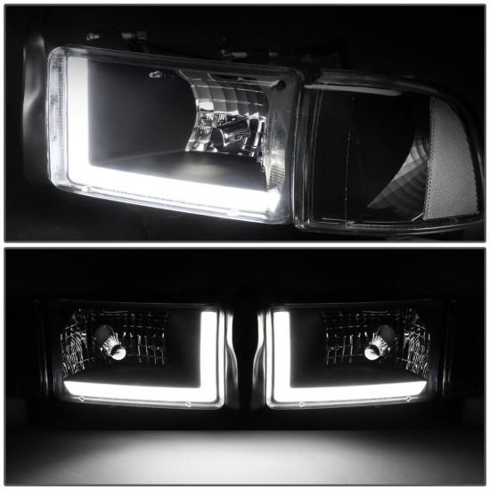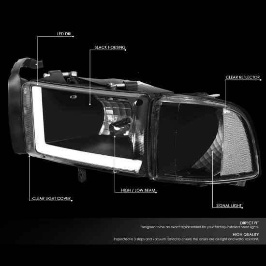94-02 Dodge Ram 1500 2500 3500 LED DRL Headlights – Black Housing Clear Corner