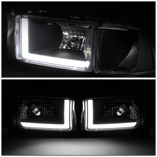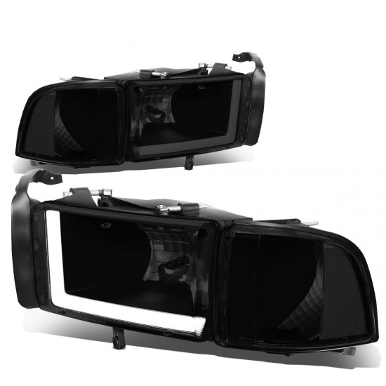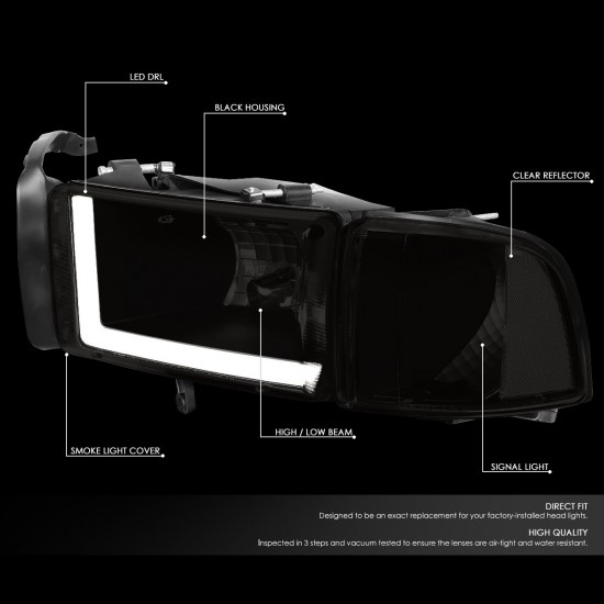 94-02 Dodge Ram 1500 2500 3500 LED DRL Headlights – Tinted Housing Clear Corner