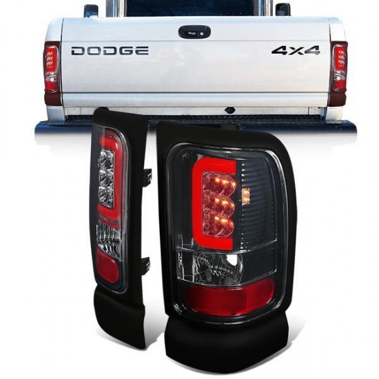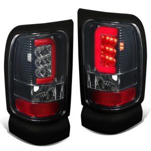 94-02 Dodge Ram 1500 2500 3500 Red C-Bar LED Rear Brake Tail Lights – Smoked