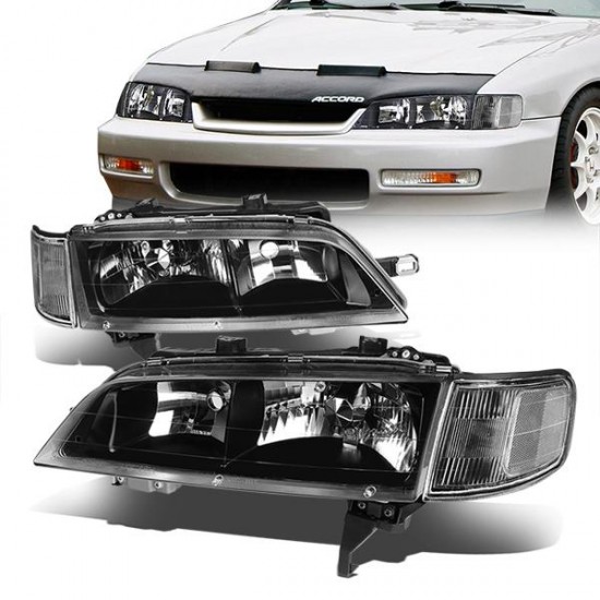 94-97 Honda Accord Headlights – Black Housing Clear Corner
