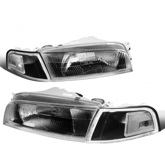 97-01 Mitsubishi Mirage Sedan Headlights – Black Housing Clear Corner