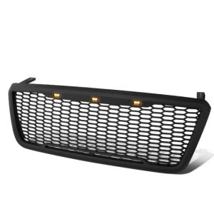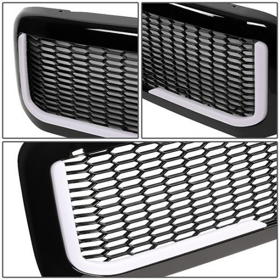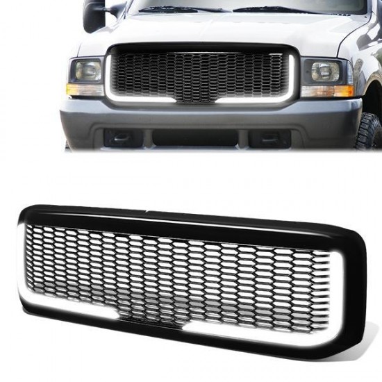 99-04 Ford F250 F350 F450 F550 Super Duty Front Grille+LED Bar – Honeycomb Mesh – Black