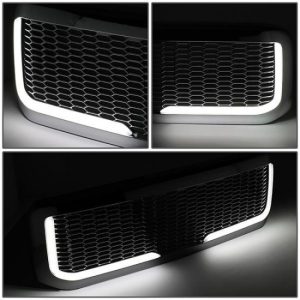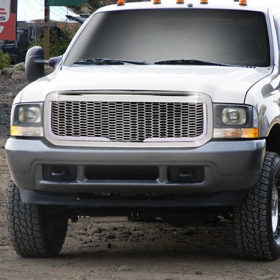99-04 Ford F250 F350 Super Duty Front Grille+LED Bar – Honeycomb Mesh – Chrome