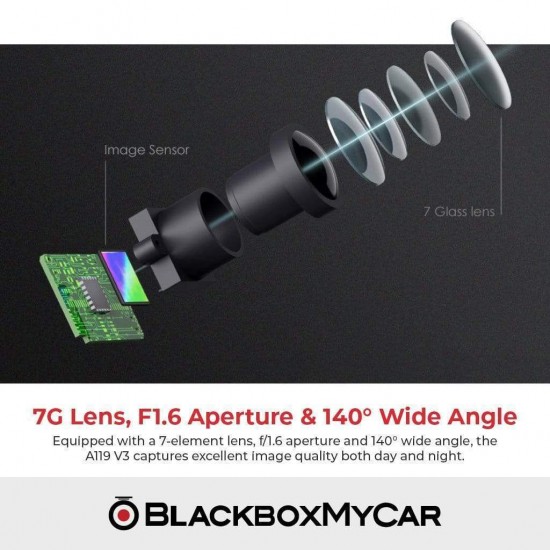 Equipped with a 5MP Sony STARVIS image sensor, the A119 V3 delivers clear vibrant colours in 2K QHD+ @30FPS – you get sharper, higher quality video with key details in all lighting situations. 140-degree viewing angle offers wide shooting coverage with minimal edge-to-edge distortion.