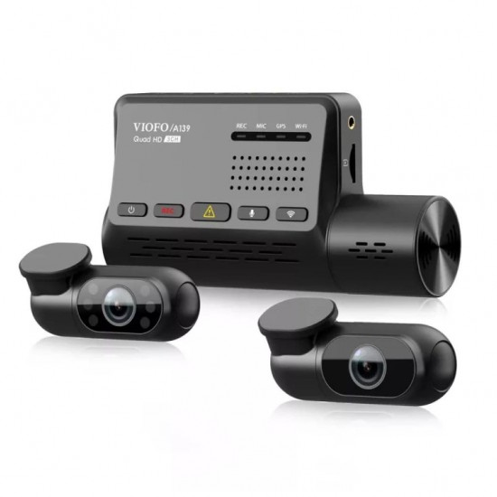 The VIOFO A139 3-CH Dash Cam is built for rideshare and taxi drivers and is perfect for anyone who wants to keep an eye on the passengers in the rear. It offers three cameras to record the front, interior and rear, and standard features like parking mode. Built-in dual-band WiFi support allows you to get real-time video preview, playback and download download footage right from your smartphone.