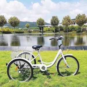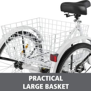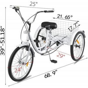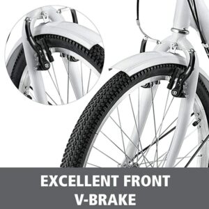 - Excellent front V brake: The front V and rear brakes of the tricycle will provide you with double protection. Double brakes allow the rider to park smoothly and intuitively. Durable ”wheel”: The three 24-inch wheels are equipped with fenders to keep the tricycle clean and tidy even in rainy days. In addition, the three-wheel design gives you extra stability.