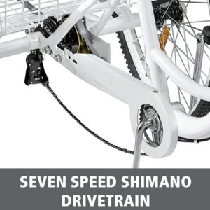 - 7-speed transmission system (7-speed tricycle): The flexible rear derailleur allows you to change speeds freely and easily in any emergency. It also includes a 7-speed flywheel and a shift lever. You can use it with confidence.