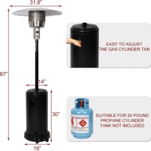 ALAREWO Outdoor Propane Heater Portable Patio Heater With Wheels 87 Inches Tall 36000 BTU for Commercial Courtyard (Black)