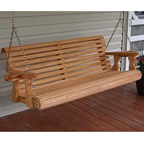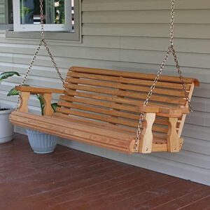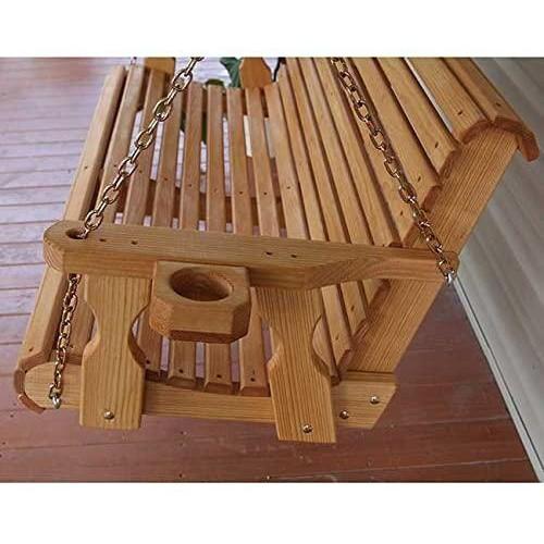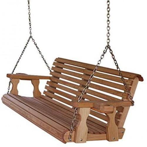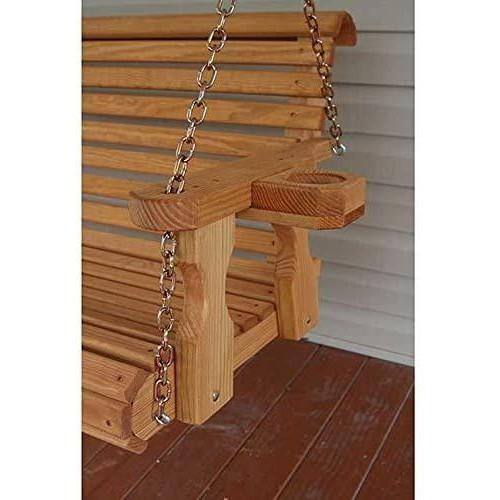 Amish Heavy Duty 800 Lb Roll Back 5ft. Treated Porch Swing with Cupholders – Cedar Stain