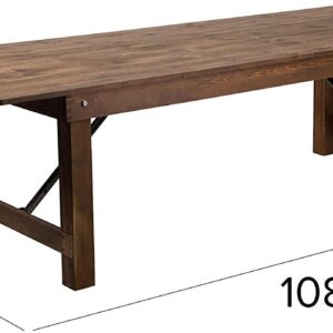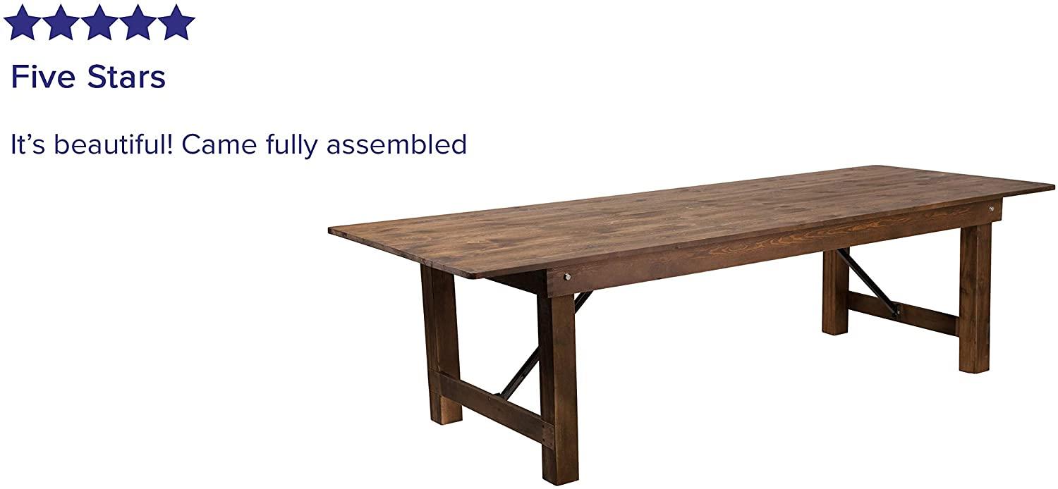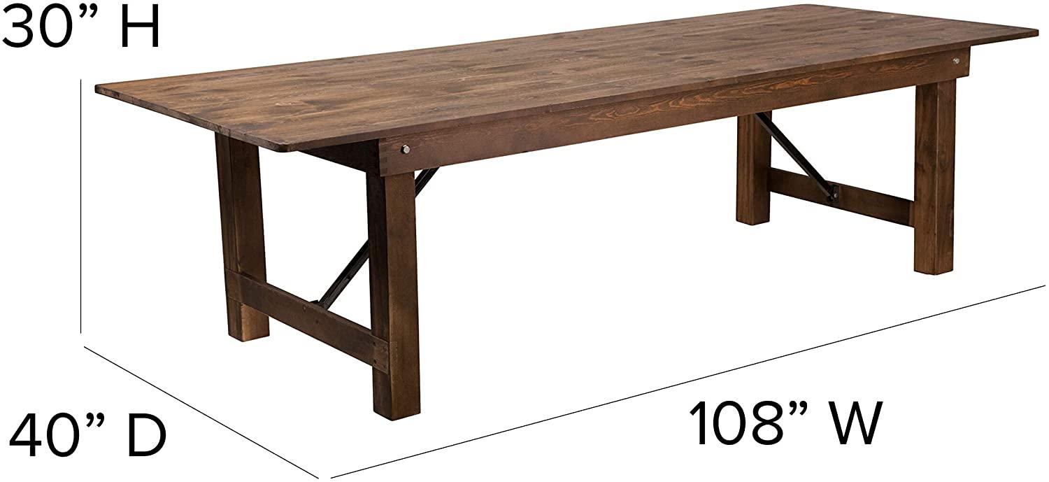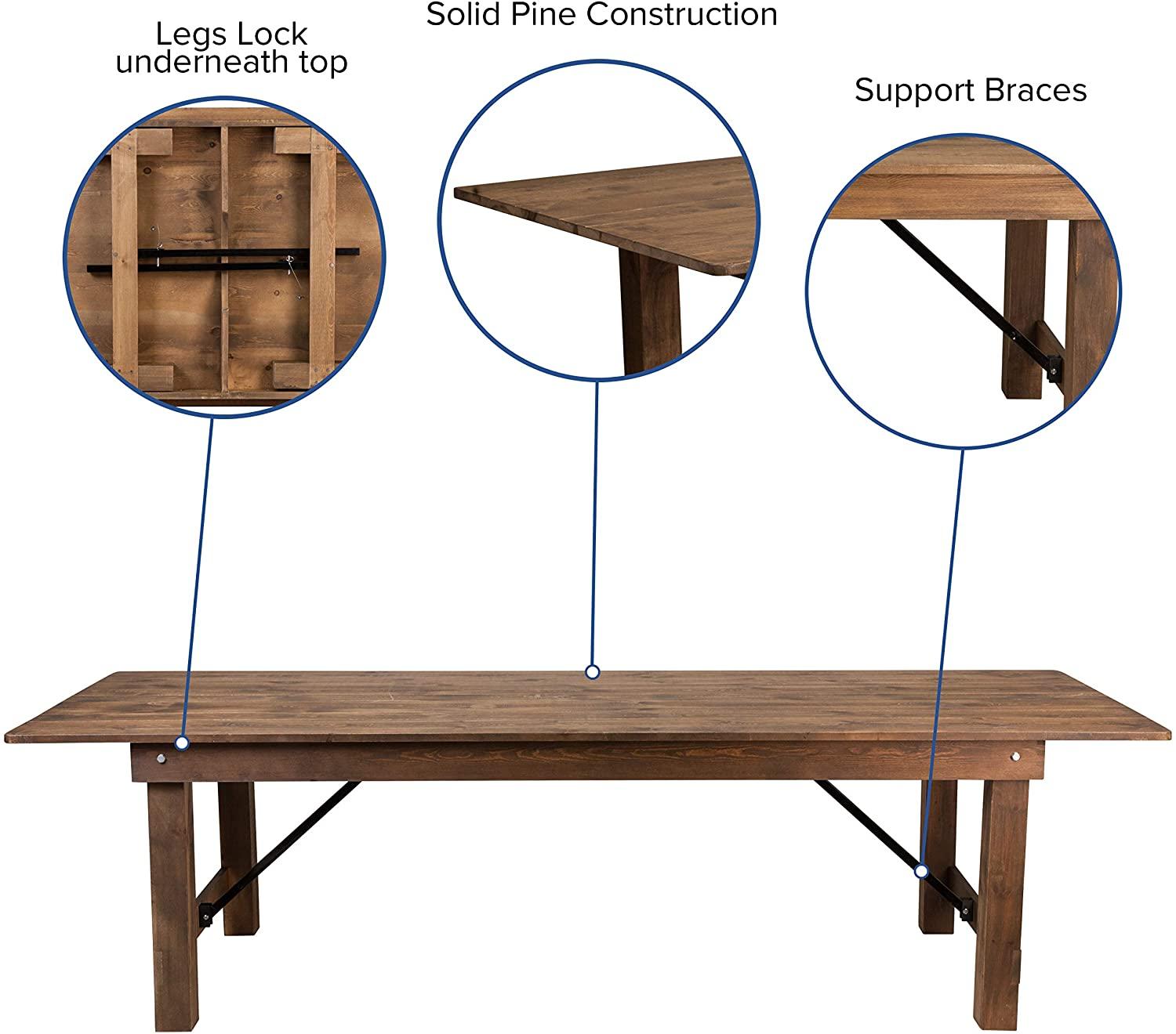 - Whether you want to create a cozy look at home or for your next event this on-trend folding farm table is perfect. This beautiful wood table is sturdy enough to use in restaurants and can be used without linens to create a country-rustic atmosphere