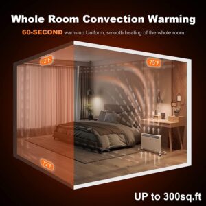 - Unique Comfortable Experience:Say goodbye to noise,cold and rhinitis.The electric room heater heating super quiet without noisy fans and does not consume oxygen and water.Maintain a warm, quiet and comfortable environment for you to work,study and sleep better.
