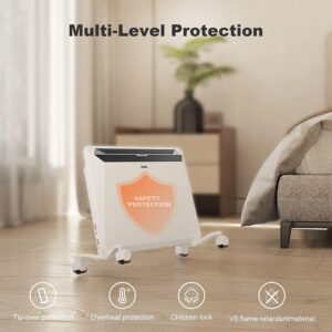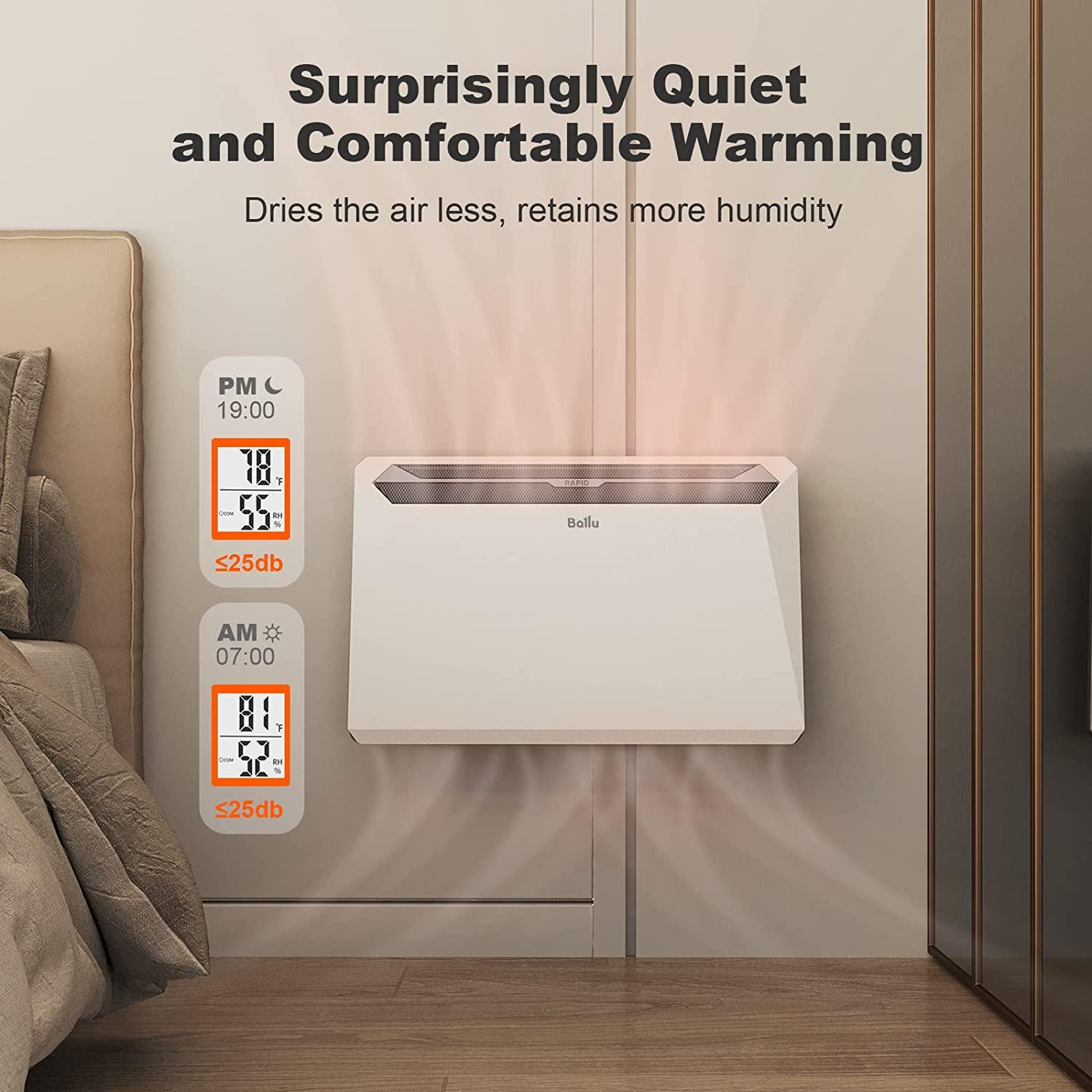 Ballu Convection Space Heaters for Indoor Use Large Room,1500W Whole Room Quiet heating with Auto Thermostat,24h Timer,Standing/Wall mount,Energy Efficient Electric Panel Heater for Bedroom,Bathroom