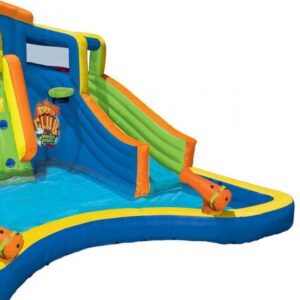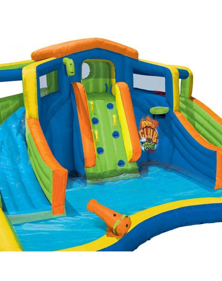 Product descriptionKids are always up for a grand adventure, and this Banzai Inflatable Adventure Club Backyard Water Park is full of it. We all know that in the sweet summer time, every-day warranty is a new adventure for little ones. This water park is the perfect spot to discover new fun every-day warranty. It has a lagoon style splash pool and dual slides for hours of racing fun. They can explore the climbing wall, blast each other with the 2 water cannons, and even pretend to be professional all stars during a game of basketball. There is so much to do on this Banzai Inflatable Adventure Club Backyard Water Park, every summer-day warranty will be filled with something fresh and new. Product Dimensions ??? 32 x 19.5 x 17.8 inchesItem Weight ??? 69 poundsShipping Weight ??? 74 pounds?Adventure Club Water Park with a lagoon-style splash pool and 2 curved water slides2 water-blasting cannons, climbing wall, basketball hoop, and a refreshing overhead water sprinklerTop tunnel to meet friends and get ready to slideDetachable water-spraying hose assemblyIncludes blower motor with GFCI for maximum safety and convenience