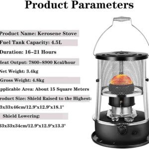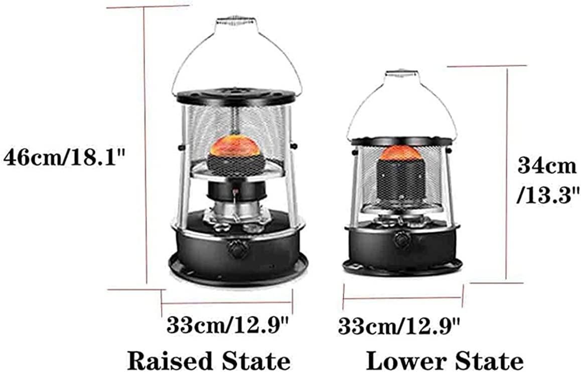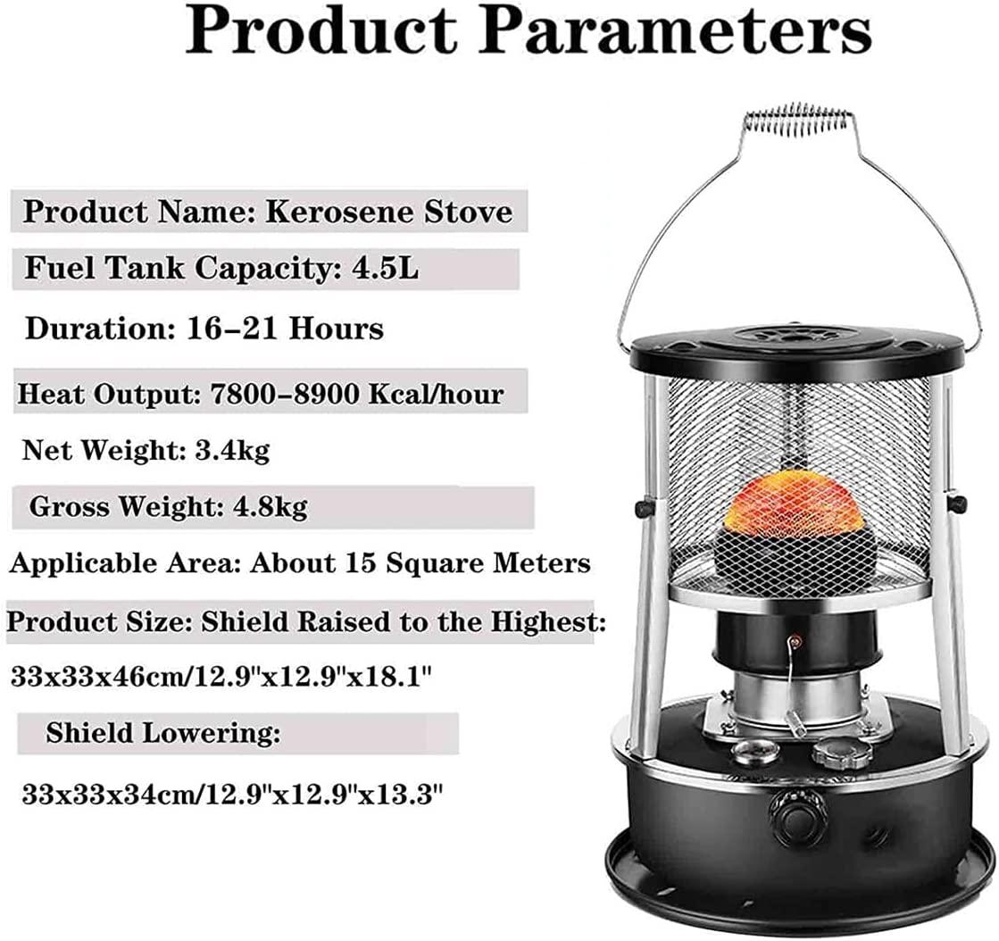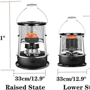 - ◆Retractable design: The protective cover of the portable kerosene stove heater adopts a retractable design, and the height of the cover can be ly controlled, up to 18.11 inches, and the lowest can reach 13.39 inches.